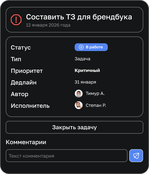 Projects — это сервис для управления проектами, задачами и рабочими процессами вашей команды. Он позволяет создавать проекты, назначать задачи, отслеживать прогресс и автоматизировать рутинные процессы.